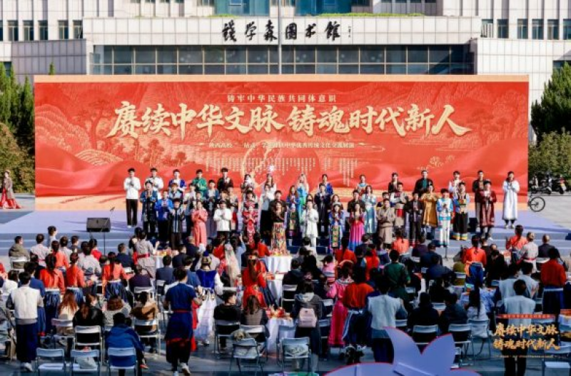 活动主题是“赓续中华文脉 铸魂时代新人”。活动由文艺演出、民俗风情体验、跳同心舞等环节组成,28所高校的各民族师生欢聚一堂,齐声歌唱。同学们身穿绚丽多彩的民族服饰,以精彩文艺演出、精美手工艺品、丰盛美食,编织起心手相牵、团结奋进的纽带,积极交流和展示各民族优秀传统文化。