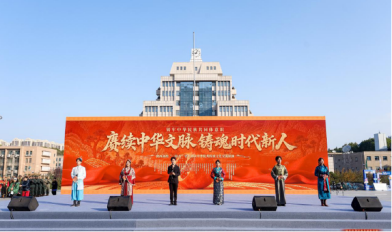 活动主题是“赓续中华文脉 铸魂时代新人”。活动由文艺演出、民俗风情体验、跳同心舞等环节组成,28所高校的各民族师生欢聚一堂,齐声歌唱。同学们身穿绚丽多彩的民族服饰,以精彩文艺演出、精美手工艺品、丰盛美食,编织起心手相牵、团结奋进的纽带,积极交流和展示各民族优秀传统文化。
